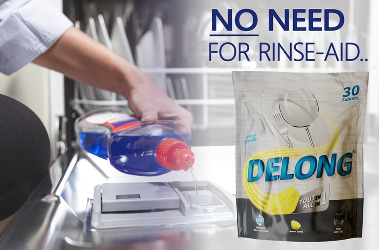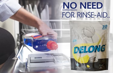 Transform your dishwashing experience with DELONG All-in-1 Dishwasher Tablets. Each pack contains 30 powerful tablets featuring advanced enzy-power technology that effectively removes stubborn stuck-on food in just one wash.
